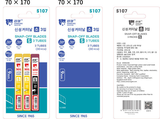 각 Sinseung S107 블리스터 카드 세트에는 S301 블레이드 2팩과 S102 블레이드 1팩이 포함되어 있으며, 총 30개의 블레이드가 있습니다.용도용 칼용으로 특별히 설계되어 있으며 시장의 대부분의 9mm 절단 칼과 호환됩니다.사용자들은 S301 블레이드를 최대 8번, S102 블레이드를 최대 12번까지 긁을 수 있습니다. 이는 신선하고 날카로운 가장자리를 노출시키기 위해 깊은 굴곡선을 따라 둔한 부분을 쉽게 제거 할 수 있습니다.이 사용자 친화적 인 기능은 절단 작업 중에 시간을 절약.