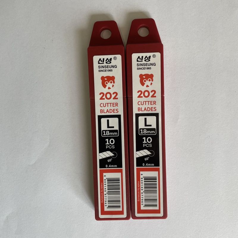 18mm 크기의 SINSEUNG L202 칼날은 한국에서 제조되어 있으며 최고 품질입니다. 그들은 내구적이며 오랫동안 지속됩니다.믿을 수 있는 절단 도구가 필요한 모든 사람에게 그들을 훌륭한 투자로 만드는당신이 프로든 취미자든, 이 칼은 당신의 모든 절단 필요를 위해 완벽합니다.