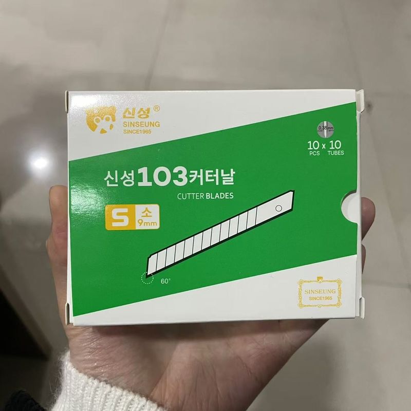 SINSEUNG S103 9mm 절단 블레이드의 포장 세부 사항은 각 튜브에 10pcs 블레이드, 각 작은 상자에 10 튜브, 그리고 8 큰 상자에 포함됩니다. 이것은 쉽게 저장하고 정리합니다,필요시 항상 준비할 수 있도록.